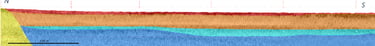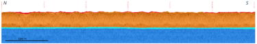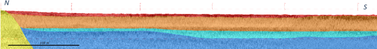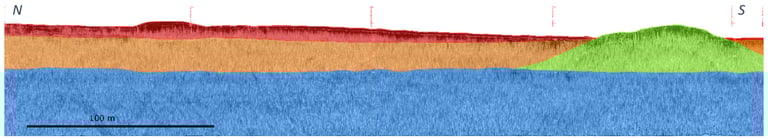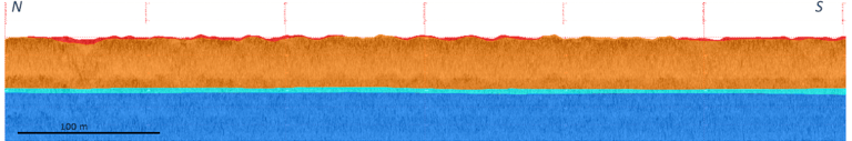 Figure 2. SBP recording of IC BS2 tracks kilometre 0+240 – 0+640. The SBP recording shows a seabed feature in the form of a sandbar to the south.