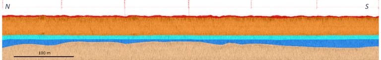 Figure 4. SBP recording of 2MBS3 kilometre track 0+000 – 0+600. Thinning of the seabed dominated by sand.