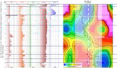 The microgravity data was processed using a 3D modeling technique, incorporating the recorded diagraphy drilling parameters as calibration values.
