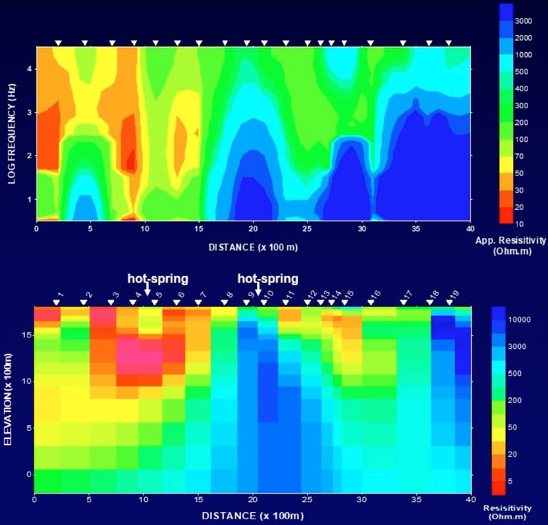 Figure 1. MT smooth modelling for the geothermal area at XXX region.
