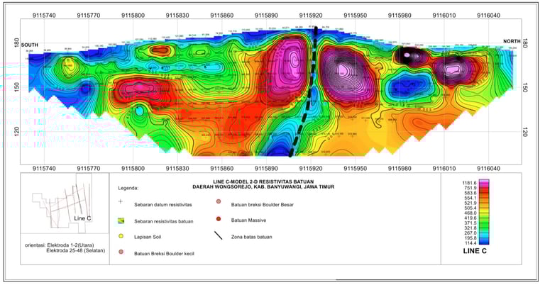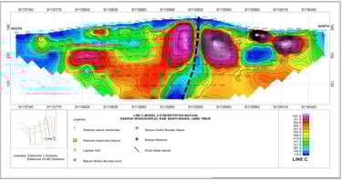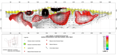 Excavation C, or multiple excavation explorations, are conducted in materials such as limestone, volcanic/andesite, or sand sediments. This technique is commonly used to determine the lateral and vertical distribution of andesite or volcanic rocks. Its effectiveness in identifying these distributions is particularly valuable due to the large size of the rocks, as well as their higher compactness and smaller pore spaces compared to sedimentary rocks.