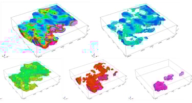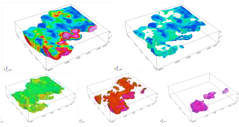 The next step in 3-D modeling involves differentiating the range of values obtained from field calibration and reference data, so that the inverted 2-D data can be used to create a 3-D solid model that includes topographic information. This model has both advantages and drawbacks for reserve calculations. If the track spacing does not align with the model, wider spacing will increase the interpolation value for each track. However, tighter track spacing improves the accuracy of the reserve calculations, resulting in more precise outcomes.