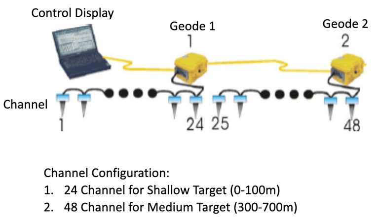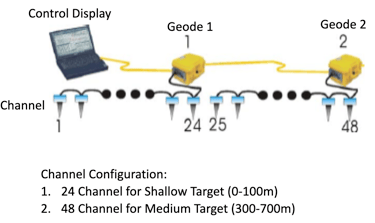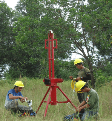 An 80kg weight is used in combination with a 120kg force generated by a rubber accelerating device, which is tightened using a hand winch, resulting in a total impact force of 200kg. For deeper seismic penetration (more than 200m), another energy source, such as an explosive charge, is recommended.
