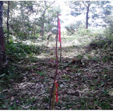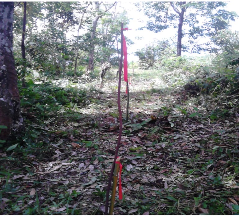 Figure 2. (a) Seismic line marked with flagging tape, (b) Accelerated weight drop device.